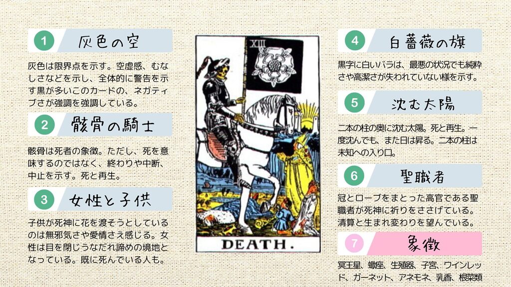 今日はタロットカード13番目のカード「死神」のカードの解説をしていきます。