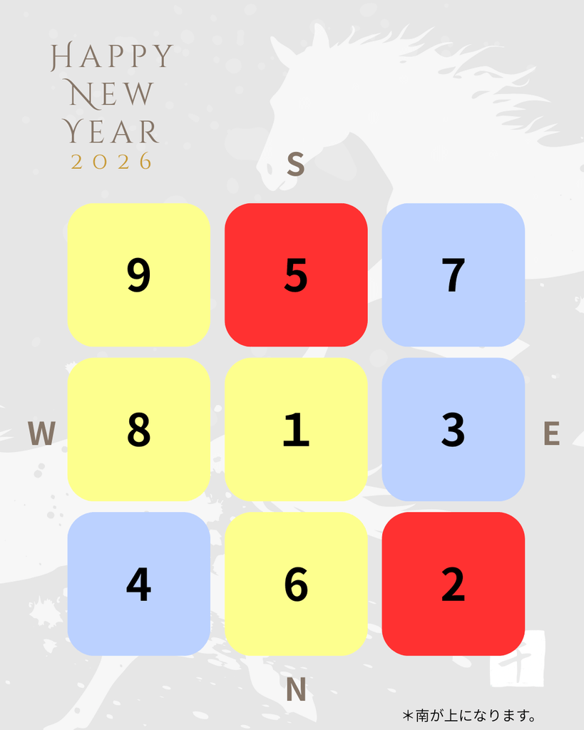 2026年は 丙午(ひのえうま) というエネルギーの年で、「炎・情熱・変革」の性質が強まります。行動力・勝負運は高まる一方、過熱や極端な変化にも注意が必要。ですが、五黄が巡る年は特に、南の火のエネルギーを強めすぎるのは控えたほうが良いと感じています。