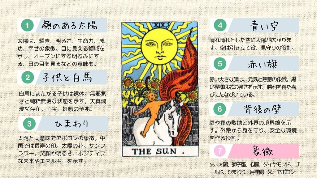 今日はタロットカード19番目のカード「太陽」のカードの解説をしていきます。